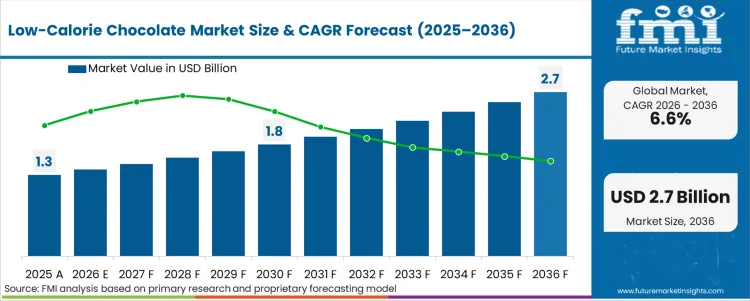 The global low-calorie chocolate market has crossed USD 1.3 billion in 2025 and is projected to reach USD 1.4 billion in 2026. According to Future Market Insights (FMI), the market is forecast to expand to USD 2.6 billion by 2036, registering a CAGR of 6.6% during 2026–2036.