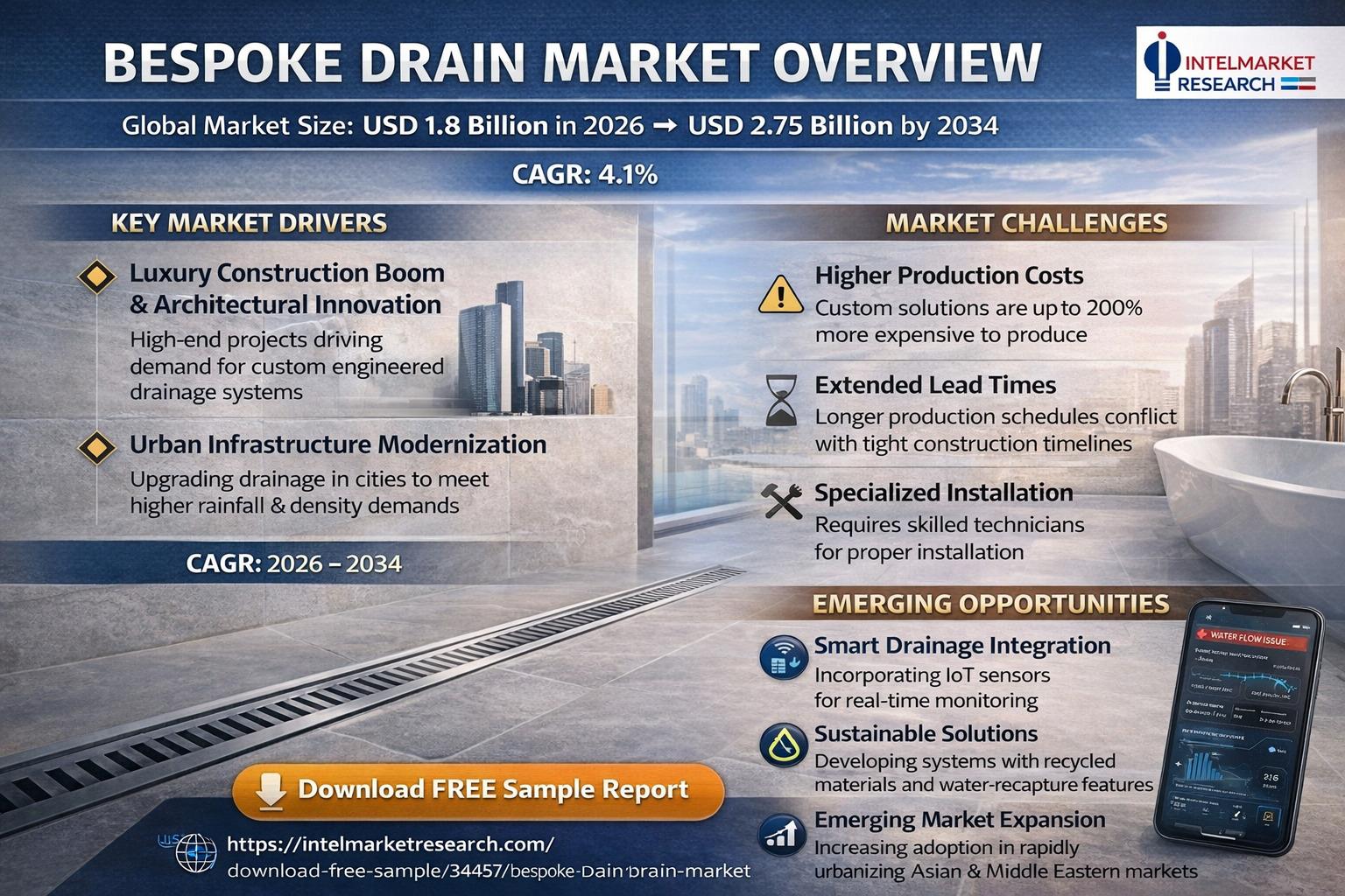 According to a new report from Intel Market Research, Global bespoke drain market was valued at USD 1.8 billion in 2025 and is projected to reach USD 2.75 billion by 2034, growing at a steady CAGR of 4.1% during the forecast period (2026-2034). This growth is fueled by increasing urbanization, stringent water management regulations, and rising demand for premium drainage solutions in luxury construction projects worldwide.