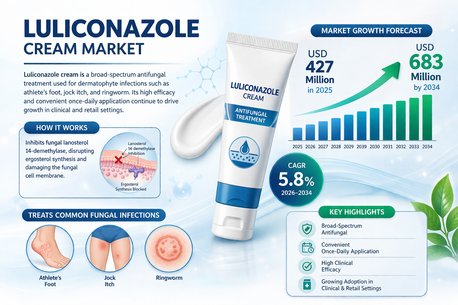 According to a newly published market research report by 24LifeSciences, global luliconazole cream market was valued at USD 427 million in 2025 and is projected to reach USD 683 million by 2034, growing at a compound annual growth rate (CAGR) of 5.8% during the forecast period 20262034.