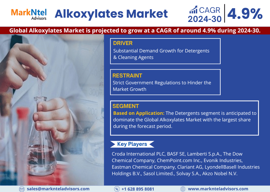 MarkNtel Advisors, a leading market research and consulting firm, has announced the release of its latest study titled Alkoxylates Market Research Report: Forecast (2024–2030). This report provides a detailed assessment of the Alkoxylates Market, covering its evolving dynamics, emerging trends, key growth drivers, major challenges, and competitive landscape.